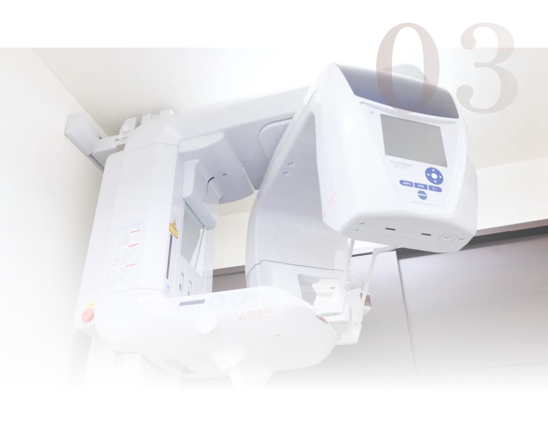 インプラントや親知らずなどの外科処置前には歯科用CTを使用。見えにくい患部も立体的に把握し、精密な治療を行います。